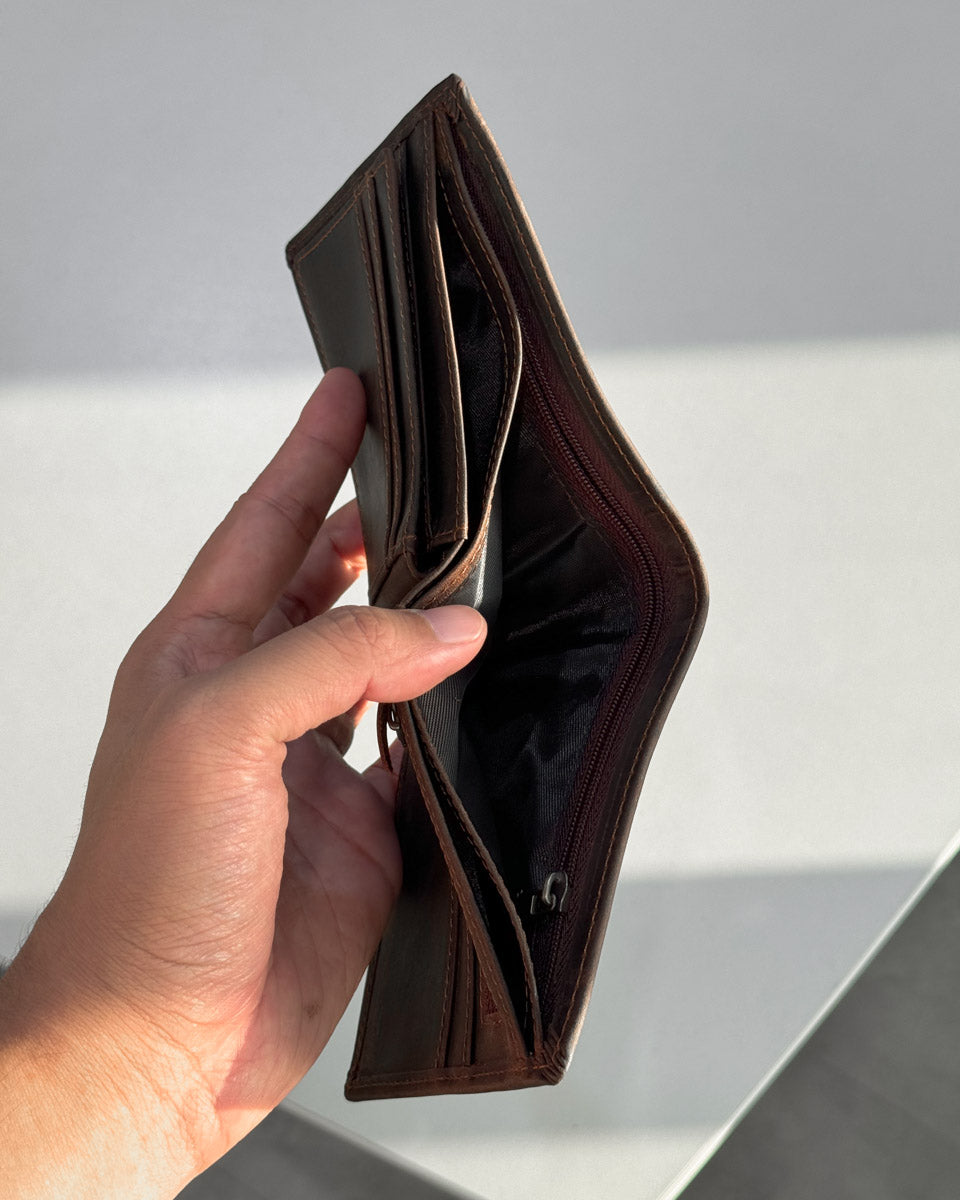Function: 2 banknote compartments, 2 zipper compartments, 12 card compartments