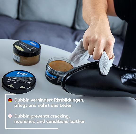 เราใช้กระเป๋าและสวมใส่รองเท้าของเราทุกวัน จึงควรทำความสะอาดเป็นประจำ Kaps Dubbin คือตัวเลือกที่สมบูรณ์แบบในการดูแลหนังแท้
