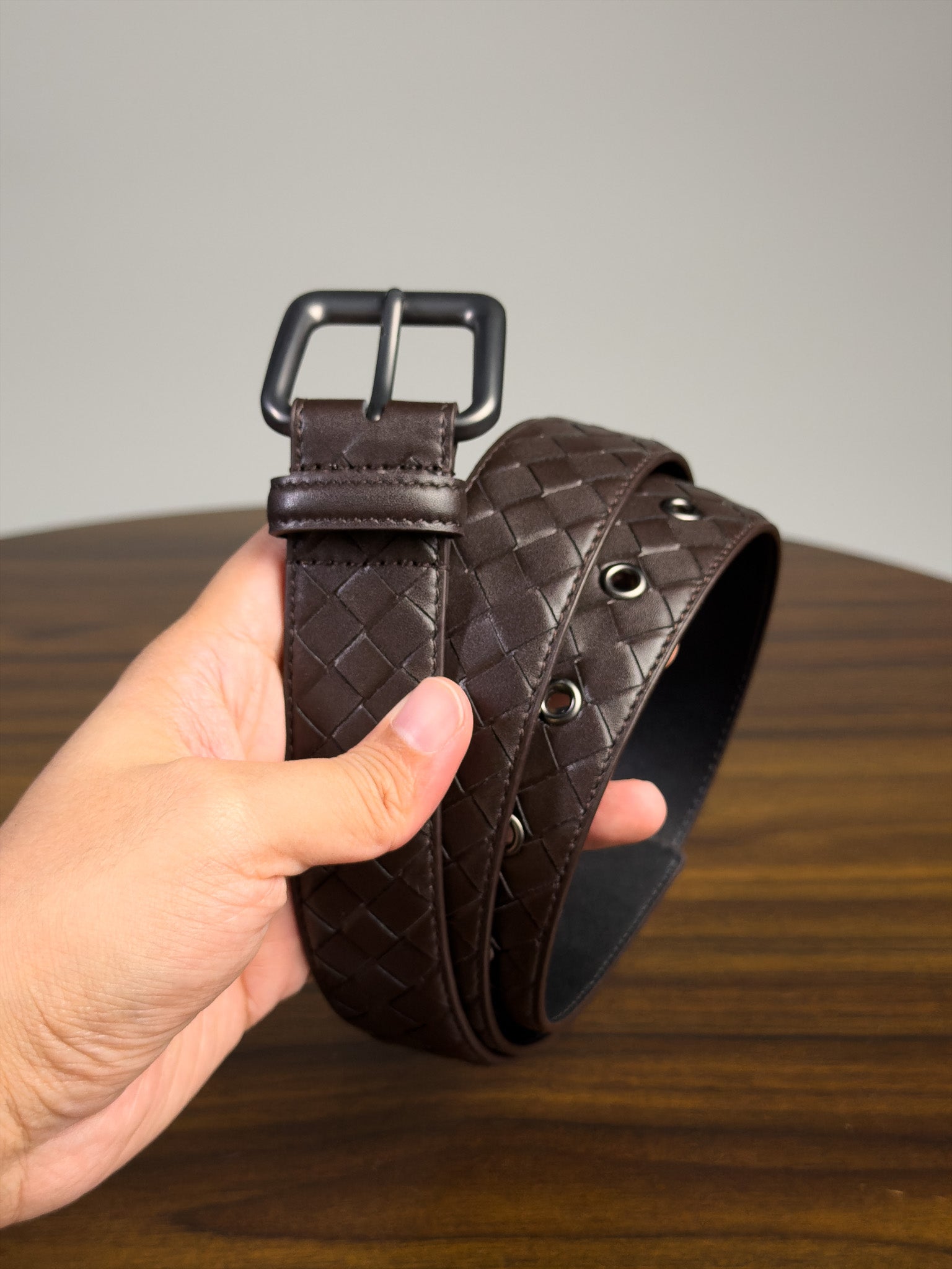 ดีไซน์เรียบ แต่มีมิติจากลายสานนูน ใส่กับเสื้อเชิ้ต เสื้อยืด แจ็กเก็ต หรือรองเท้าหนังโทนเข้ม ๆ จะเข้าที่สุด